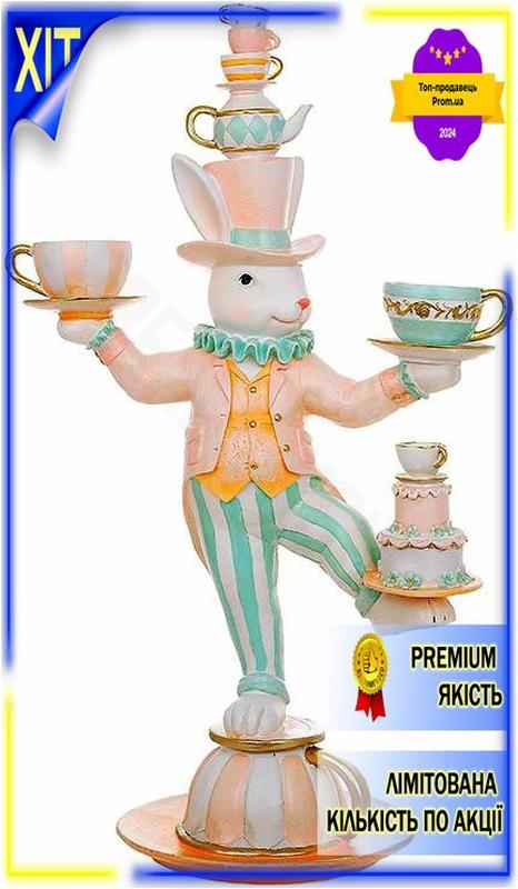 Dm декоративная статуэтка кролик-шляпник спецификация 2.2 с чашками 59см для интерьера зай...