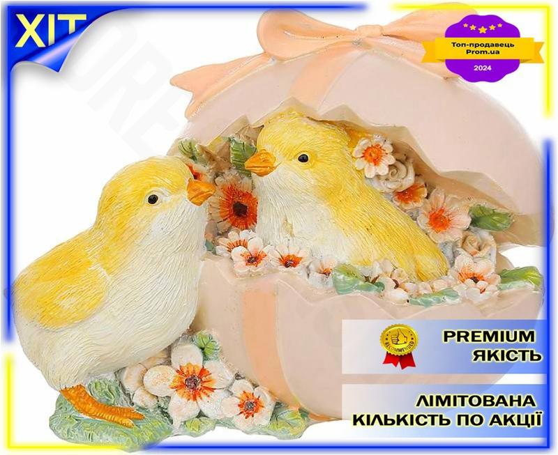 Dm фигурка декоративная цыплята спецификация 2.2 в яйце с цветами 13см персиковая с желтым...