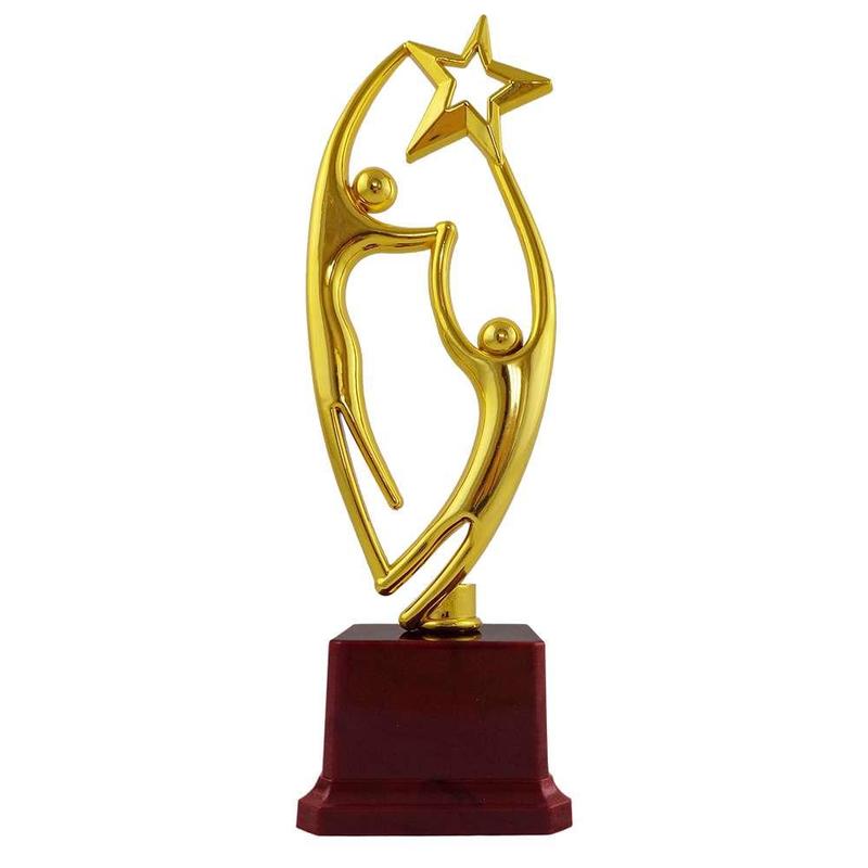 Статуэтка 57069 Пара превосходный и оригинальный подарок. Подарочная статуэтка выполнена в виде силуэта двух людей держащих в руках звезду, из пластика с покрытием под золото на устойчивой подставкке, такой сувенир станет отличным украшением интерьера и запоминающимся подарком. Статуэтка упаковывается в индивидуальный подарочный тубус из прозрачного пластика. Уникальная упаковка разработана компанией Карнавал Приколов. Также изготавливаем индивидуальную печать надписи на табличке для пьедестала Кубков и Статуэток размерами: 5. 2х3. 5см (цвет текста - черный, фон - золотой). На бордовом пьедестале статуэтки может присутствовать имитация мраморных разводов. Наш магазин предлагает товары оптом и для дропшипперов, вы можете оформить заказ на сайте Карнавал Приколов и задать любые интересующие вопросы менеджеру, заказав звонок на нашем сайте.