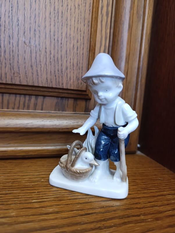 Фарфоровая статуэтка - мальчик с гусяком Высота статуэтки 12 см.
