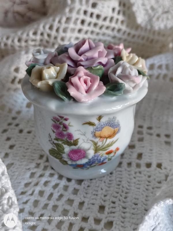 🌹Винтажная фарфоровая статуэтка - белая вазочка с розами в итальянском/английском стиле. Без клейма. Предмет декора туалетного столика. Есть недостатки: на самой вазочке (отмечено на фото7), есть небольшие сколы на некоторых лепестках (не бросаются в глаза). Цена без торга