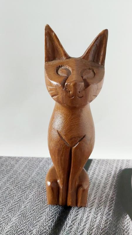 Статуэтка кошка винтаж гдр 1960 гг натуральное дерево кот