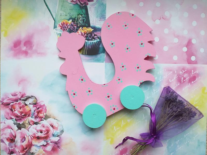 Статуэтка сувенир петух на колёсах деревянный