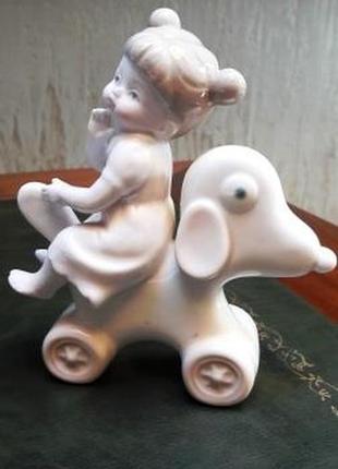 Фарфоровая статуэтка Девочка на собачке в отличном состоянии.