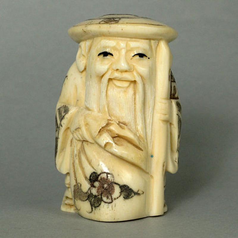 Фигурка нецке, вырезанная на кости 51х33х30мм. Стоит клеймо мастера.