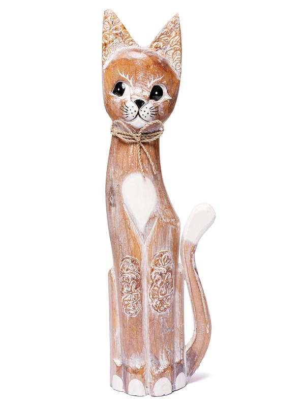 Кот или кошечка,их почитают как хранителей домашнего очага,приносят в дом,благополучие и покой. Кошка "Антик" рыжая,с бантиком на шее,высота 40см.Материал- дерево бальса,декорирована - веревкой.Цвет - рыжий с белым. Страна производитель - Индонезия,ручная работа. Отправка в день заказа!