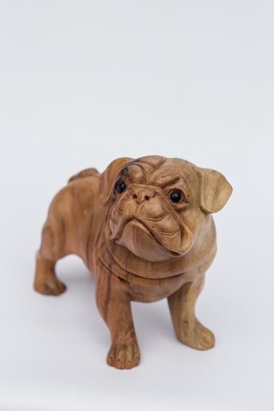 Статуэтка собаки деревянная мопс патрик длина 30см