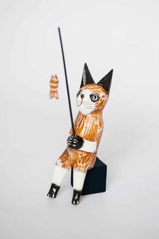 Статуэтка кот рыбак,деревянный высота 20 см