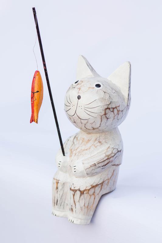 Статуэтка кот рыбак деревянный толстяк,высота 20 см