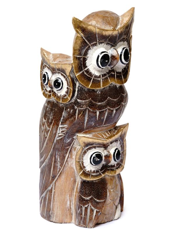 Сова - символ мудрости и познания,проницательности,чуткости и пророческого дара. Семья сов натуральных с золотом.Материал - дерево бальса,роспись,ручная работа. Размер:высота 40см. Страна производитель - Индонезия. Отправка в день заказа!