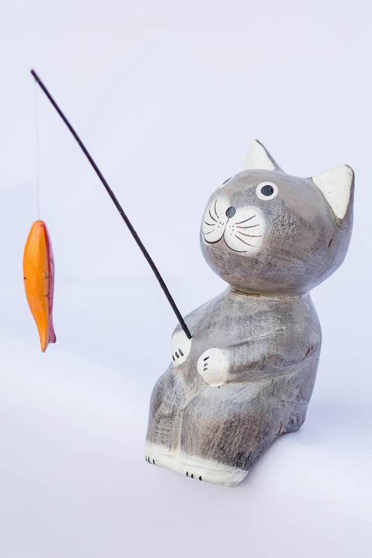 Статуэтка кот рыбак деревянный толстяк высота 20 см