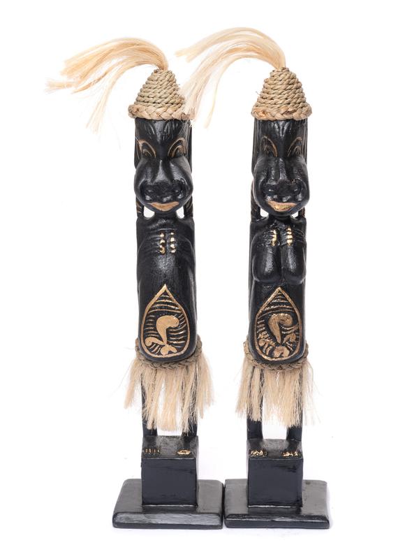 Статуэтка деревянная пара маори темные с золотом высота 33см