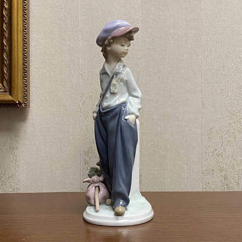 Фарфоровая статуэтка Lladro, № 5400, оригинальное название «The Wanderer (Странник)». В испанском варианте «Golfillo Plantado Глянцевая отделка. Номер модели 01005400. Клеймо Lladro. Сделана в Испании в 1987 -1998 гг. Ручная работа. Скульптор: Antonio Ramos. …молодой и веселый озорник остановился у указательного дорожного столба…кепка на голове, руки в карманах, рогатка в нагрудном кармане, узелок на земле…пора в путешествие…) Высота - 22 см. Ширина (макс.) - 11 см. Состояние идеальное, трещин, сколов, повреждений нет. Не в оригинальной коробке.