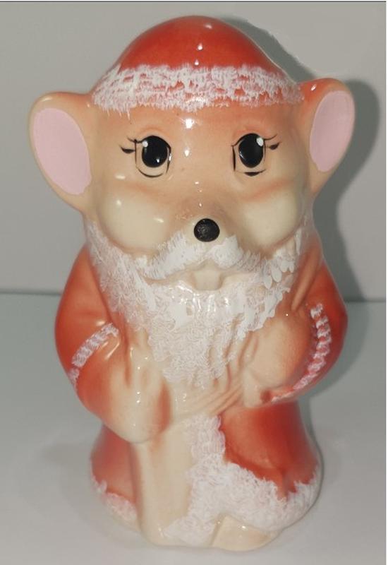 Керамическая статуэтка "Мышка Дед Мороз". Размер фигурки - 9x6x6 см Мышка одета в костюм сказочного персонажа, главного героя новогодних праздников. А вот на спине переносит белого кота!