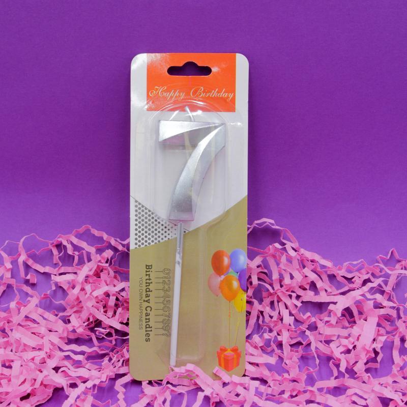 Свеча на торт 3d цифра 7 серебряная, свеча-цифра на день рождения, свеча на торт серебряна...
