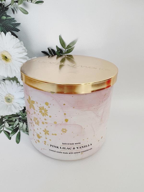 💞Ароматична свічка Pink lilac & vanilla від Bath and body works 🕯 🌺Виготовлена з ексклюзивної суміші соєвого воску і натуральних ефірних олій найвищої концентрації - безперервно і рівномірно тане, випромінюючи досить аромату щоб заповнити всю кімнату, при горінні не коптить, завдяки фитилю з натурального матеріалу та якісної суміші рослинного воску - розрахована на 25-45 годин безперервного горіння - в незапаленому вигляді можна використовувати як освіжувач або ароматизатор для невеликих приміщень, ванної кімнати, вбиральні та ін - дуже гарне оформлення, скляна банка з наклейкою і кришка виглядають разом дуже затишно і стильно, цією свічкою можна чудово прикрасити інтер'єр - Має 3 гнота 💦Композиція аромату: свіжий букет бузку, росиста зелень, квіти ванілі ❎ Ціни на платформі шафа, нажаль без торгу, бо в вартість закладена комісія за користування сервісом