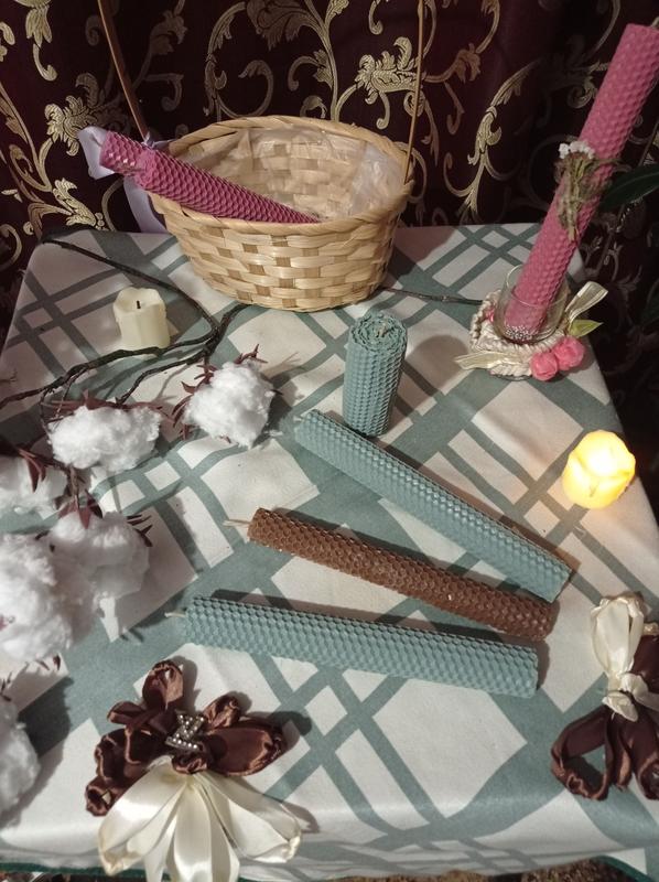Натуральні свічки з вощини з додаванням ефірних масел,мають дуже приємний аромат Висота 20,5 час горіння 2,5-3год. ціна 40грн.декор +5грн.