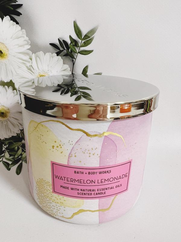 💞Ароматическая свеча Watermelon lemonade от Bath and body works 🕯 🌺Изготовлена из эксклюзивной смеси соевого воска и натуральных эфирных масел высочайшей концентрации - непрерывно и равномерно тает, излучая достаточно аромата чтобы заполнить всю комнату, при горении не коптит, благодаря фитиллю из натурального материала и качественной смеси растительного воска - рассчитана на 25-45 часов непрерывного горения - в незапаленном виде можно использовать как освежитель или ароматизатор для небольших помещений, ванной комнаты, впитывающие и др - очень красивое оформление, стеклянная банка с наклейкой и крышка выглядят вместе очень уютно и стильно, этой свечей можно отлично украсить интерьер - Имеет 3 гнота 💦Композиция аромата: линий арбузный лед, газированная вода и лимон в сахара