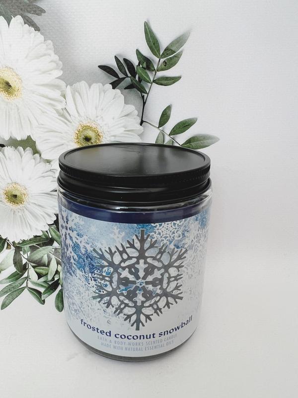 💞Ароматична свічка Frosted coconut snowball від Bath and body works 🕯 🌺Виготовлена з ексклюзивної суміші соєвого воску і натуральних ефірних олій найвищої концентрації - безперервно і рівномірно тане, випромінюючи досить аромату щоб заповнити всю кімнату, при горінні не коптить, завдяки фитилю з натурального матеріалу та якісної суміші рослинного воску - в незапаленому вигляді можна використовувати як освіжувач або ароматизатор для невеликих приміщень, ванної кімнати, вбиральні та ін - дуже гарне оформлення, скляна банка з наклейкою і кришка виглядають разом дуже затишно і стильно, цією свічкою можна чудово прикрасити інтер'єр - Має 1 гнот 💦Композиція аромату: суміш замороженого кокоса, ванілі і фрезії, дерева і цукрової пудри.