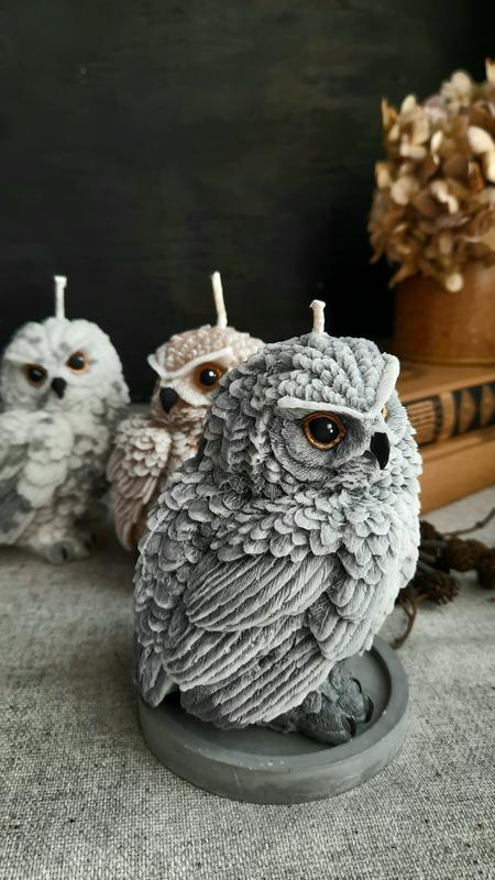 Превосходное дополнение к вашему интерьеру. Материал - пальмовый воск. Вес - 260г. Цвет – серый, коричневый, белый. Без аромату. К свече прилагается открытка в подарок