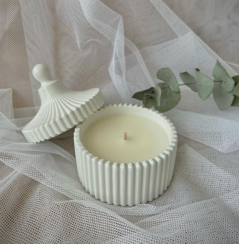 свеча в шкатулке из гипса. если вы романтик , то эта вещь именно для вас . Украсьте интерьер таким изделием и наслаждайтесь уютной атмосферой. свеча без запаха. размеры : ширина 8 см, высота без крышки 3.5 см , высота всей шкатулки 9см. примерный объем 175 мл цвет : белый цвет изделия может немного отличаться от фото .