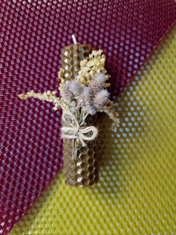 Высота свечи 10 см ( также можем изготовить по Вашему размеру). Имеет приятный медовый аромат. Доступные цвета можно увидеть на фото.