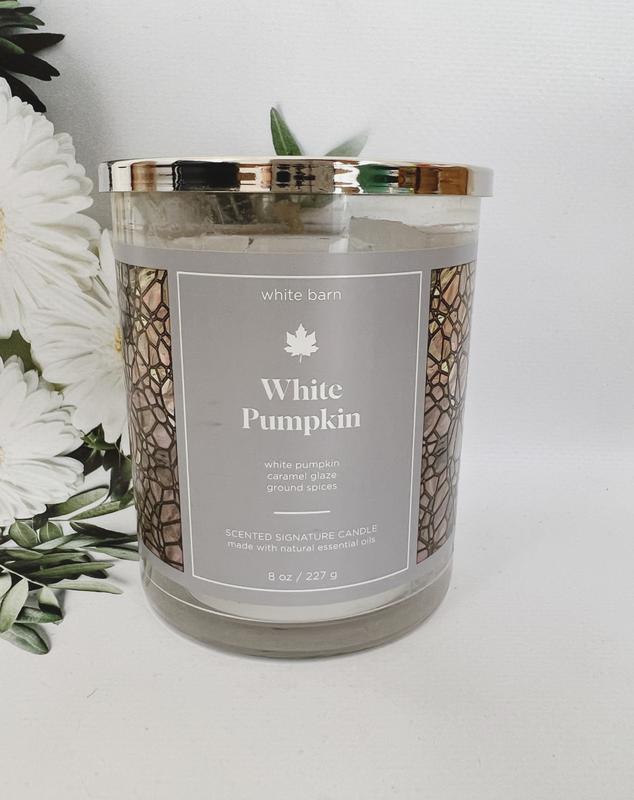 💞Ароматическая свеча White pumpkin от Bath and body works 🕯 🌺Изготовлена из эксклюзивной смеси соевого воска и натуральных эфирных масел высочайшей концентрации - непрерывно и равномерно тает, излучая достаточно аромата чтобы заполнить всю комнату, при горении не коптит, благодаря фитиллю из натурального материала и качественной смеси растительного воска - в незапаленном виде можно использовать как освежитель или ароматизатор для небольших помещений, ванной комнаты, впитывающие и др - очень красивое оформление, стеклянная банка с наклейкой и крышка выглядят вместе очень уютно и стильно, этой свечей можно отлично украсить интерьер - Имеет 1 гнот 💦Композиция аромата: имбирная белая тыква, карамельная глазурь и теплая смесь специй.