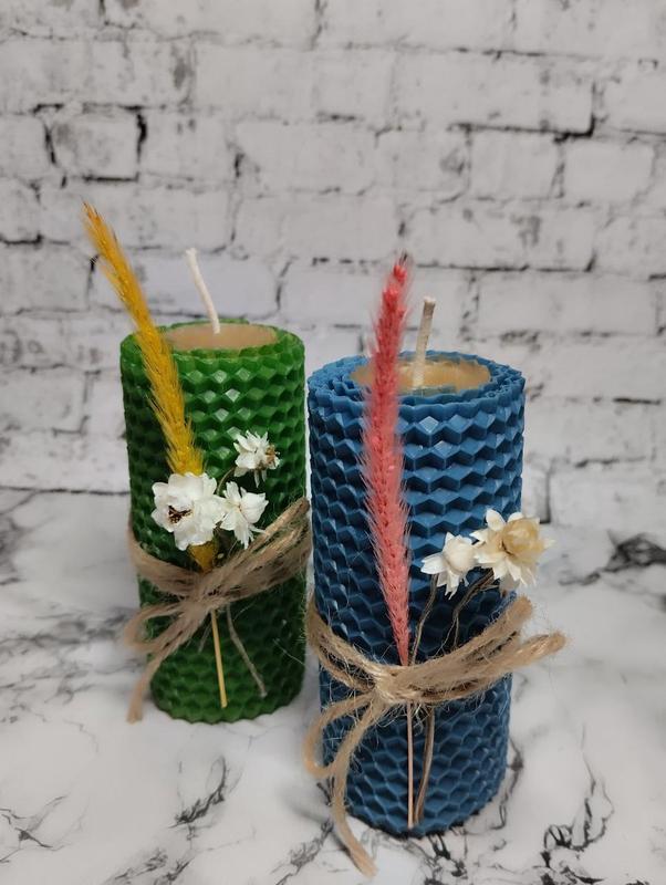 В набор входит: 1. Свеча из вощины зелёного та синего цвета 2шт 10*4 2. Подарочная коробка + упаковочный материал. Катаные свечи из натурально медовой вощины - это настоящее НАСЛАЖДЕНИЕ. Они выглядят не только красиво и эстетично, но и очень полезны, так как при сгорании выделяют полезные для здоровья вещества. Я уверена, что эти незабываемые медовые ароматы не оставят Вас равнодушными и Вам захочется приобрести такие свечи как себе, так и в подарок. Ведь каждая свеча сделана мной для Вас собственноручно с большим удовольствием в хорошем настроении и с любовью.❣️ Продаем как отдельно, так и набором, можем подобрать и сделать по вашему желанию:)