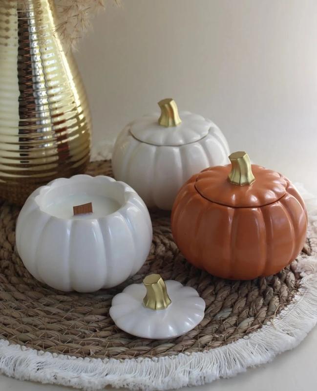 Свічка в скриньці гарбуз прикрасить ваш інтер'єр. Матеріал високоміцний гіпс Розміри: довжина з кришкою 9.3 см, ширина 10 см Кольори: білий, жовтогарячий
