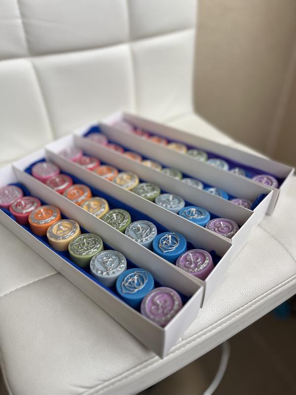 В наборе 8 свечей. 7 чакр, которые можно использовать для проработки в медитации энергетической системы, а также 1 цветок жизни. Это 100% благоухающий соевый воск: •природный продукт, получаемый из соевого боба • свечи из соевого воска являются биологическими и экологически чистыми, безопасными и для детей и для беременных женщин •соевый воск абсолютно безопасен для кожи •при горении свеча не повышает уровень С02 в воздухе •соевый воск не оставляет пятен на одежде и мебели, его легко очистить с помощью теплой воды и мыла Размер каждой свечи 3.7 см на 1,5 см.