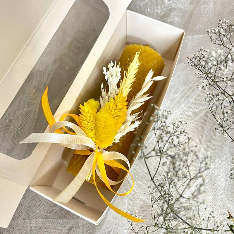 Свеча ручной работы в подарочной упаковке.свеча из вощины. свеча с декором.