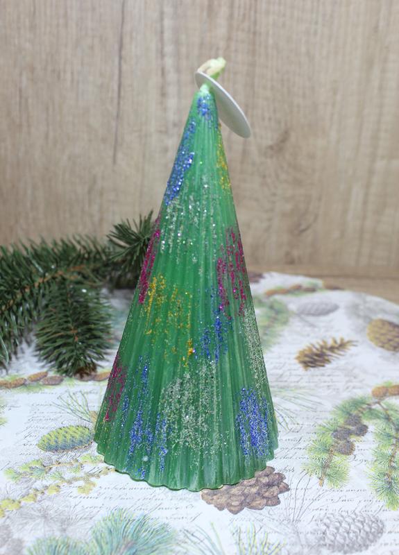 Свеча елка ручной работы - прекрасный символичный подарок себе, коллегам, знакомым или близким Вам людям. Изготовлена из пищевого парафина высшей степени очистки, марки П-2. С добавлением стеарина, для удлиненного горения. Является экологически чистым продуктом. Высота свечи 15 см, диаметр 7.5 см, вес 235 грамм. Приятный аромат -карпатский лес. Упаковывается в подарочную коробку. Данная свеча подойдет как для декора вашего дома так и станет отличным подарком.