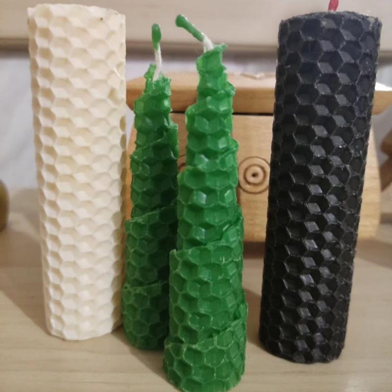 Свічка з вощини Біла і чорна Висота 10 см Ширина 2, см під замовлення + листівка по бажанню за вашими фото(буде дорожче)