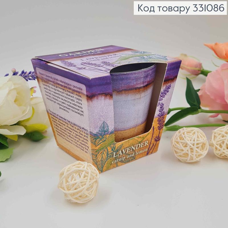 Аромасвеча в стакане 115г с запахом лаванды, кошачьей мяты и лимона 30ч горения, аромасвеч...