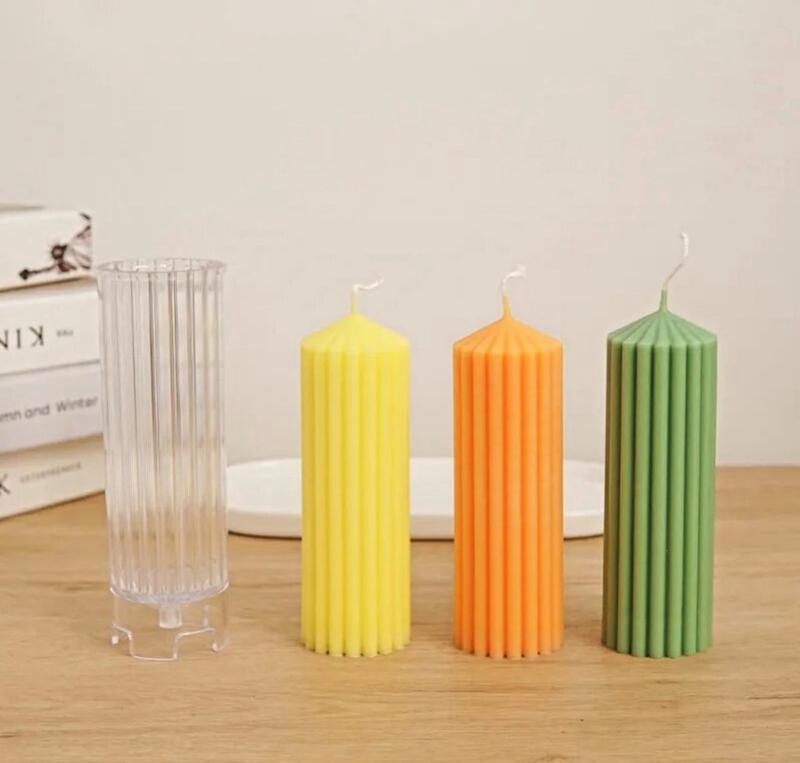 Форма для свечи, цилиндр рифленый, широкая полоска диаметр 5 см высота 15 готовое изделие.