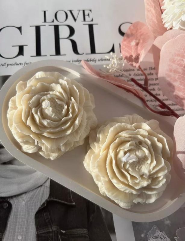 Натуральний соєвий віск,півонія 70 гр,підставка гіпсова довжина 18 см. Аромат свічок,апельсин, вишня,карамель.
