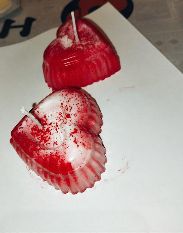 Свеча изготовлена собственноручно, в виде "сердечек" Уникальность этой свечи в том, что она в едином экземпляре, больше такой нет. Изготовлена свеча из натурального соевого воска, с хлопковым соевым угнетением цена за пару 100грн ціна за шт 65