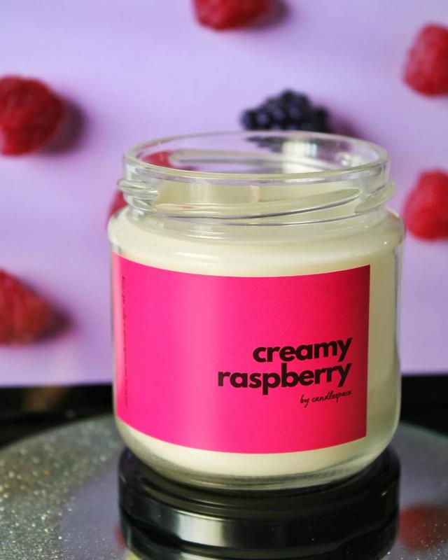 Вершкова малина 😊 Неймовірно смачний ягідний аромат! Creamy Raspberry починається з верхніх нот свіжої малини, груші та яблука. Середні ноти - мадагаскарська ваніль, малина, цукор, масло, клен. Базова нота - ванільний екстракт. В наборі: соєва ароматична свічка з бавовняним гнітом у баночці 200 мл, листівка-інструкція, конфеті 🎊.