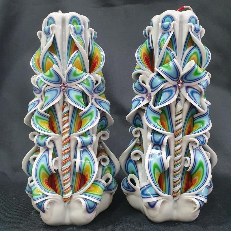 Подарочные свечи можно подарить на любой праздник будь то День Святого Валентина,8 Марта, Пасха, Новый год, Рождество, День Рождение и т. д. На основу свечи набраны цвета в виде радуги и выложены разного вида лепестки которые формируют рисунки. Цена одной свечи 400 грн.,высота 20см Дополнительные характеристики: Повод: 8 марта Повод: День Святого Валентина Повод: Другой праздник Повод: Новый год Разновидность : Ароматические свечи Разновидность : Резные свечи Разновидность : Свечи круглые Разновидность : Фигурные свечи