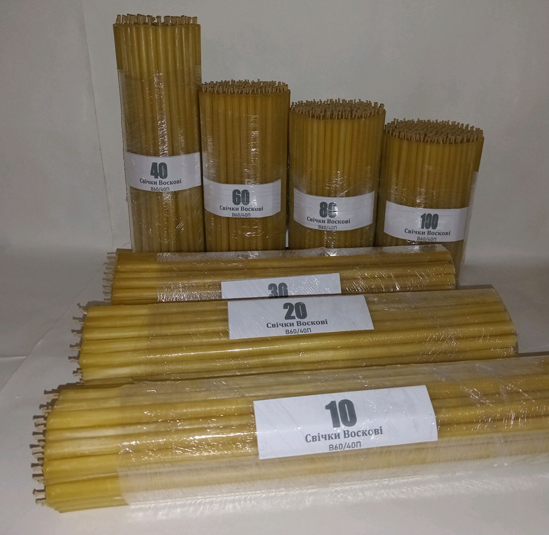 Свечи церковные воск смешанный 60/40. Номера свечей; №100, 80, 60, 40, 30, 20, 10, 9. Цвет свечей, от светлого до темного воска. Свечи налицо, так и под заказ! Наличие и количество, уточняйте, пожалуйста! Доставка по Украине, новой почтой и крепежами. А также самовывоз в Харькове.