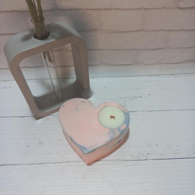 Подсвечник в форме сердце с соевой свечей. Свеча имеет деревянный угнетение, которое приятно потрескивает. После того как кверните свеча,можно использовать чайную свечу. Кашпо делается вручную, поэтому цвет можно выбрать. Размер 110*90*45, 15 мл