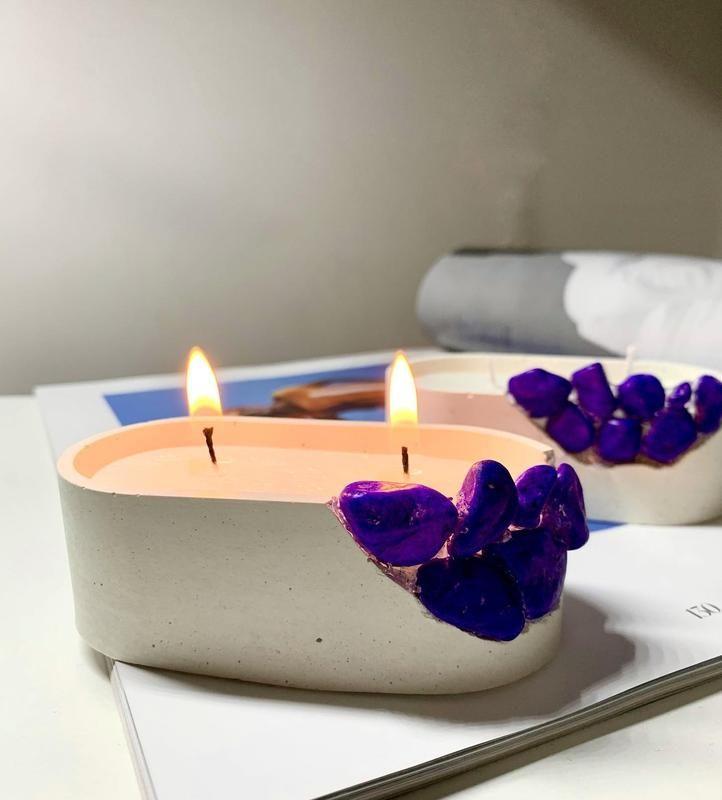 Цікаве доповнення до білого бетону фіолетових камінчиків , які надають родзинки до класичної свічки. ▫️ 9,5*5*3 см ▪️під замовлення можливі різні кольори. ▫️ціна 120 грн Аромати: ваніль, сандал, плід страсті, Lancôme, цитрусова буря. 💌 при замовленні в дірект #свічкиукраїна#свечиукраина#іванофранківськ#київ#львів#дніпро#подарунок#свічкиручноїроботи#свічкипідзамовлення#одесса#бетонсвечи Товар под заказ