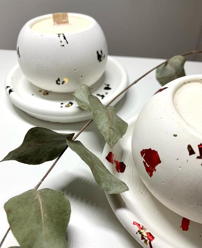 Ще один набір із золотом, який складається з самої свічки з дерев'яна яним фітелем , який буде створювати при горінні ефект потріскування каміну , і красивим доповненням до неї - ніжного підносу ▫️ Чаша 9*6 см Піднос діаметром 15 см ▪️під замовлення можливі різні кольори і поєднання ▫️ціна 220 грн - чаша з свічкою + підставка Аромати: ваніль, сандал, плід страсті, Lancôme, цитрусова буря, Gucci by Gucci, Versace 💌 при замовленні в дірект #свічкиукраїна#свечиукраина#іванофранківськ#київ#львів#дніпро#подарунок#свічкиручноїроботи#свічкипідзамовлення#одесса#бетонсвечи Товар виготовляється на замовлення