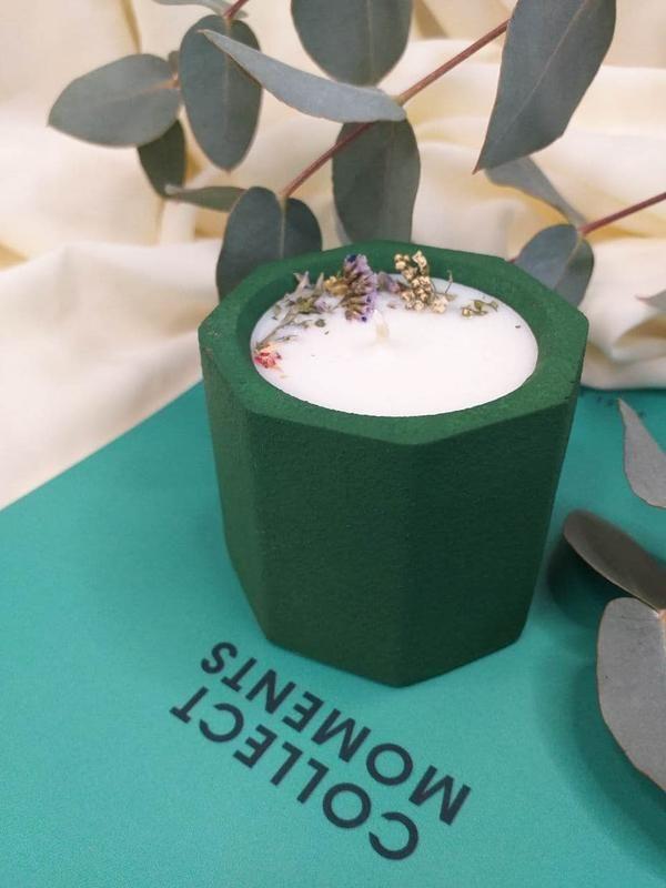 Представляємо вам серію ЕКО свічок green Насичений зелений колір кашпо, м'який білий колір соєвого воску та натуральний декор сухоцвітами ідеальні у поєднанні. Свічка стане чудовим декором для сімейного свята, романтичної вечері та веселого чаювання у колі друзів. Вогонь свічки створює душевну та затишну атмосферу. Кашпо має розмір: 6 см висота та 5 см діаметр. Соєвий віск і бавовняний ґнот горять красиво і довго, близько 7-8 годин, не виділяючи шкідливих речовин. Свічка має ніжний витончений аромат. Є ОПТ. Дополнительные характеристики: Повод: 8 марта Повод: День Святого Валентина Повод: Другой праздник Повод: Новый год Разновидность : Ароматические свечи Разновидность : Резные свечи Разновидность : Свечи круглые Разновидность : Фигурные свечи