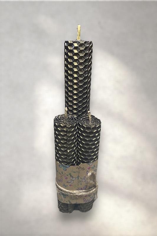 Сделано из натурального пчелиного воска. Свечи с легким ароматом меда невероятного цвета. Высота свечей в наборе: 20 и 12,5 см