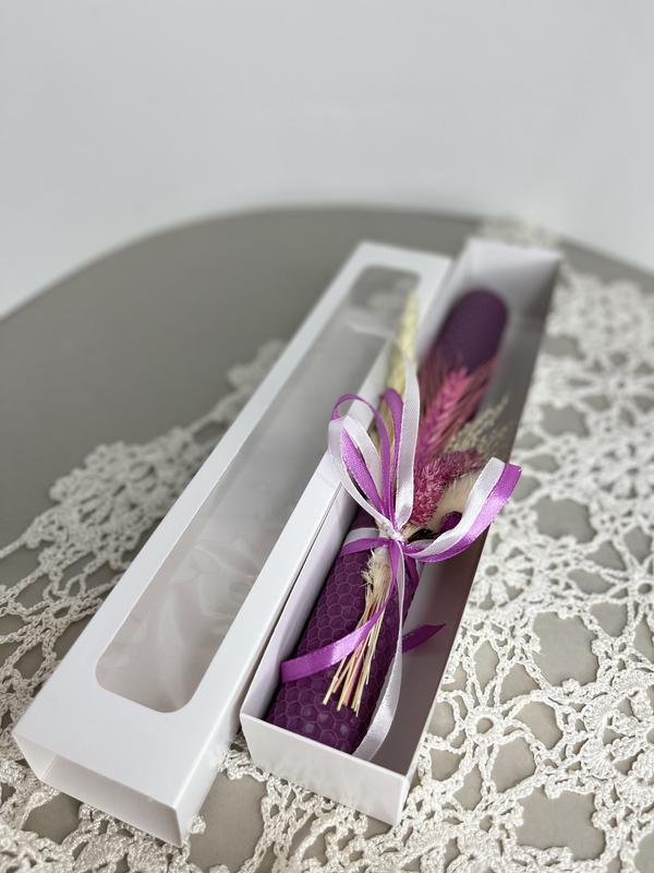 Свеча ручной работы в подарочной упаковке.свеча из вощины. свеча с декором.