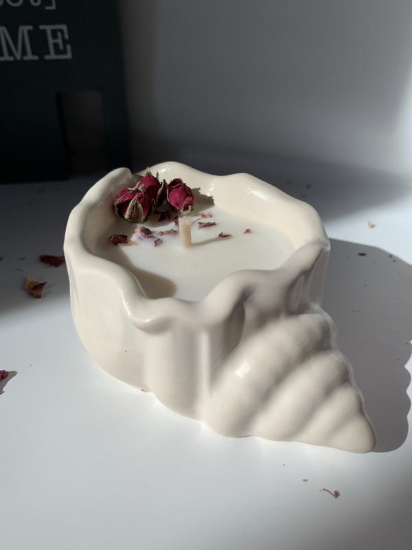 Свеча «Мушля» из соевого воска с декором Обʼєм: 60мл Цвет: бежевый Аромат: Клубника и сливки Верхние ноты: зеленые листья, лимон Средние: клубника, сливки Базовые: сахар, светлый мускус 190грн /шт Ручная работа!