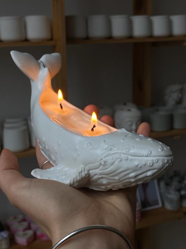Свічка у формі кита - це не лише витончений елемент декору, але й джерело літнього настрою. Свіжий аромат квітів та цитрусів перенесе вас у теплі дні, наповнені сонячними променями та морським бризом. Свічка виконана в білому кольорі, що робить її універсальною для будь-якого інтер'єру. Має два бавовняні ґноти, які забезпечують рівномірне горіння. Вага свічки - 303 грами Об'єм - 100 мл Загальна висота - 8 см Довжина - 19 см. Ідеальна для створення атмосфери релаксу та спокою.