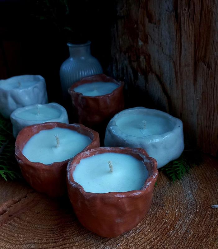 Соевые свечи ручной работы. Кашпо выполнено собственноручно из глины, сертифицированные ароматы, хлопковый угнетение. Стоимость зависит от размера свечи.