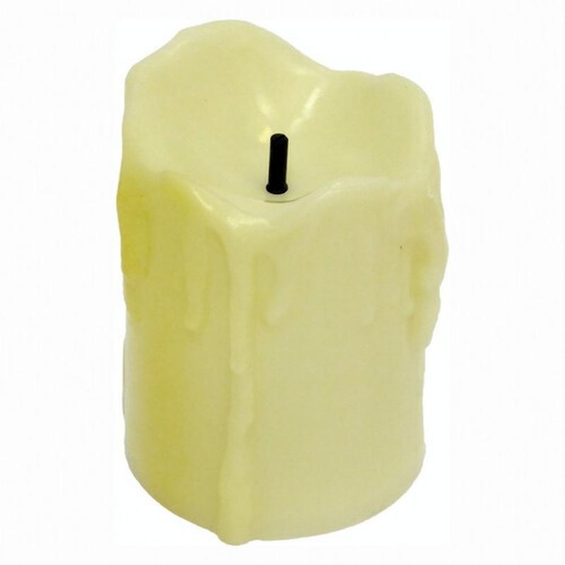 Электронная свеча с тёплым светом, которая работает от батареек-таблеток (идут в комплект). Размер Высота - 5,5 см, диаметр - 3,6 см. Материал - пластик
